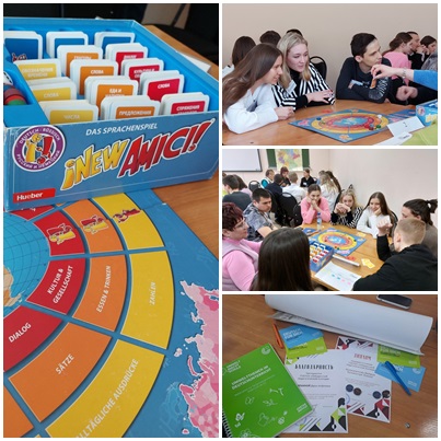 Студенты 21 группы Валерия Б. и Полина К., под руководством Алёшиной Д.А. приняли участие в языковом турнире по немецкому языку "Учить немецкий играя-New Amici". Обучающимся предстояло пройти 2 тура увлекательной настольной игры "New Amici" и попробовать свои силы в переводе с русского языка на немецкий и наоборот. Студенты достойно представили колледж и получили заслуженные награды.